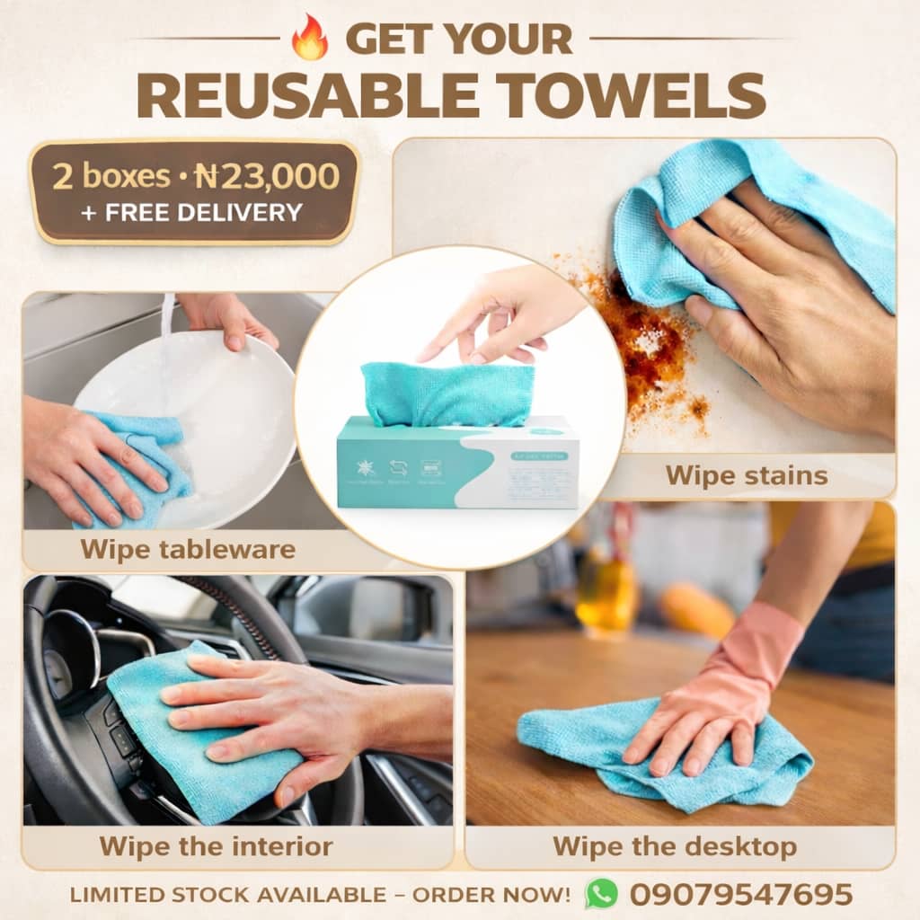 ☑️I love these towels — they feel so soft and really soak up spills fast. I’ve washed them many times and they still look new. Worth every naira!” — Amaka, Lagos