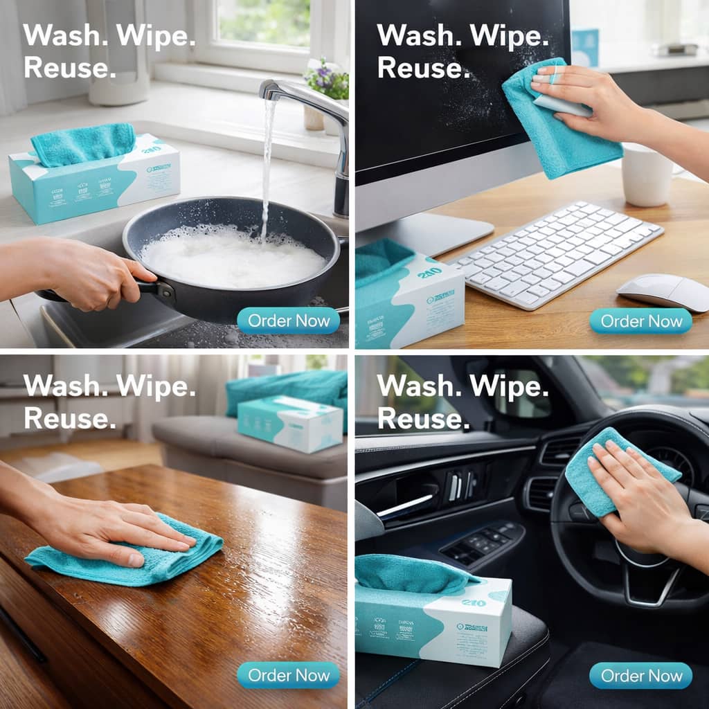 Luxurious to the touch, built for everyday life — our reusable cleaning towels are highly absorbent, quick-drying, and easy to wash. Designed for Nigerian homes and small businesses, they replace wasteful paper and last wash after wash. Ready to switch?